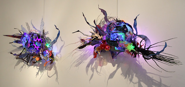 Two new videosculptures are currently on display in the window,[visible both day and night]